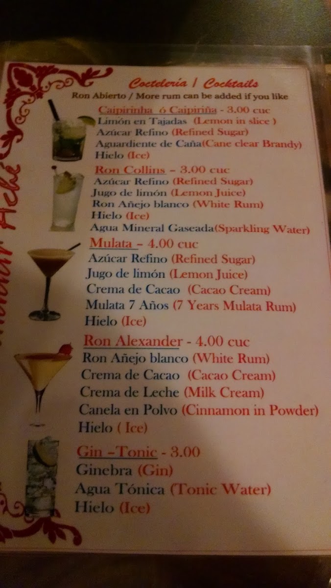 Paladar Ache’s menu leaves a lasting impression with its balanced mix of fresh flavors, thoughtful presentation, and satisfying portions, making it a memorable dining experience in Cienfuegos. The Seafood stands out as a highlight, prepared with care and freshness that reflects the coastal character of the region, while the Nice Salad Presentation adds a visually appealing and refreshing option that complements the richer dishes on the menu. To complete the meal, the Cerveja Bucanero is a perfect pairing, offering a crisp and refreshing contrast to the flavorful cuisine. Overall, the menu feels well-curated and satisfying, combining local ingredients, attractive presentation, and reliable quality, making Paladar Ache a place worth revisiting for both its food and relaxed dining atmosphere.